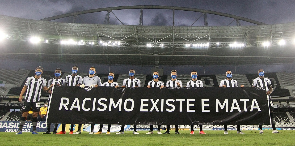 "Racimo existe e mata". Foi com uma faixa com esta mensagem para lá de importante, que o Botafogo entrou em campo para enfrentar o Fortaleza.