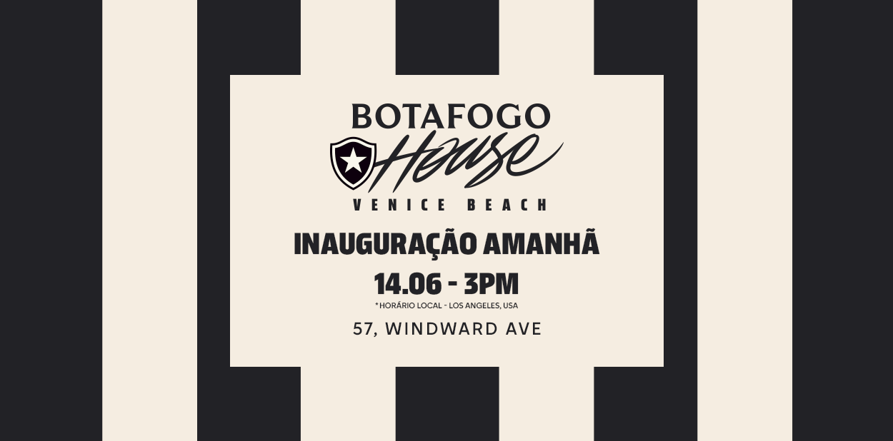 O Botafogo inaugura neste sábado (14) uma experiência única para os seus torcedores nos Estados Unidos com a Botafogo House, espaço oficial e gratuito localizado em Venice Beach (57 Windward Ave), em Los Angeles, local centro das atividades alvinegras durante a disputa da Copa do Mundo de Clubes da FIFA.