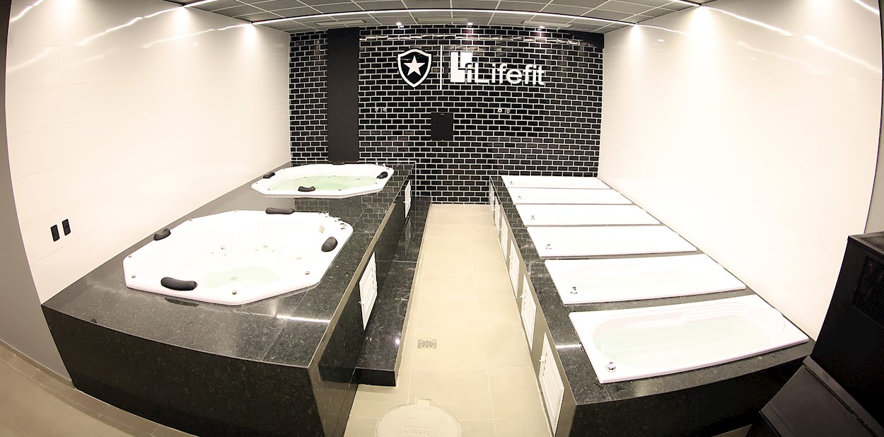 O espaço conta com banheiras de hidromassagem, que ajudam no relaxamento muscular após os treinos e jogos, banheiras específicas para crioterapia, fundamentais para auxiliar e acelerar recuperação, e área dedicada à massoterapia, que potencializa a regeneração muscular, melhora a mobilidade e promove relaxamento físico e mental.