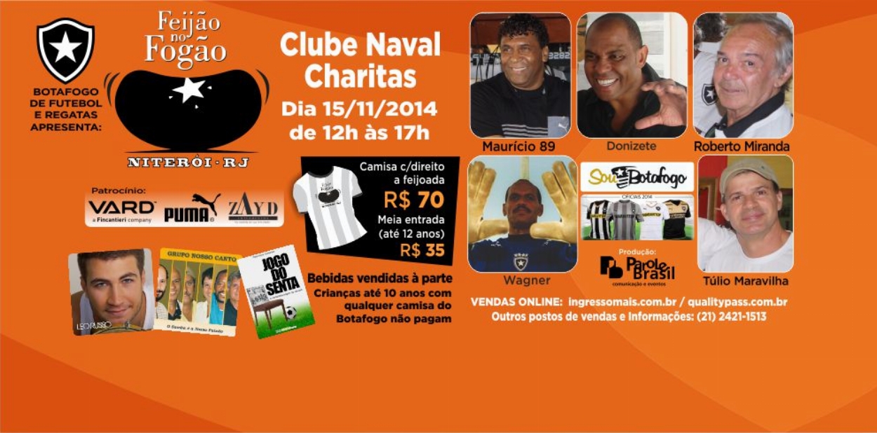 O evento será uma feijoada recheada de atrações, com apresentações de Léo Russo e do Grupo Nosso Canto. A taça do Brasileiro de 95 e da Taça Brasil (68), além de uma galeria de fotos da época dos ex-jogadores presentes, estarão em exposição para apreciação dos torcedores. Outra grande novidade é a presença do escritor botafoguense PC Guimarães. Ele estará no local com o seu livro "Jogo do Senta", muito bem avaliado pela crítica, para autógrafos dos alvinegros. Vale a pena ter esse registro!