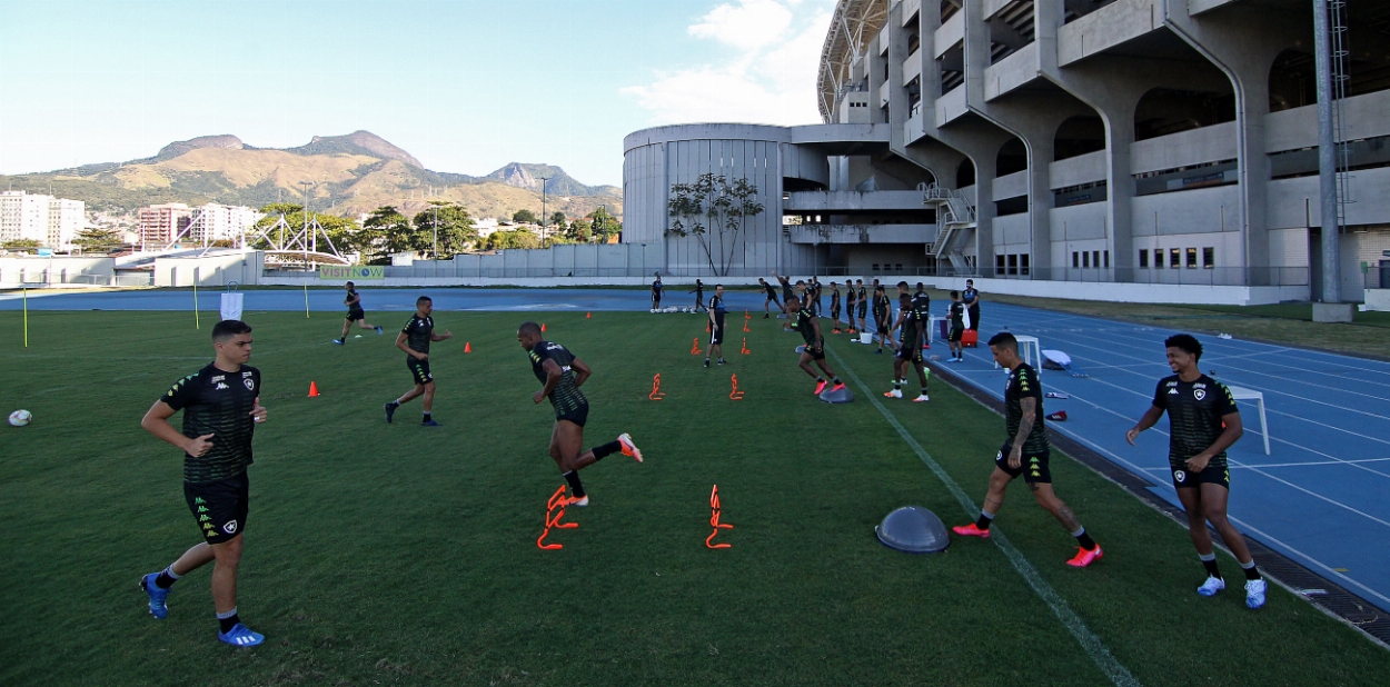 O Botafogo realizou treinamento na tarde desta segunda-feira no Estádio Nilton Santos. O clube segue cumprindo o protocolo do Departamento Médico e todas as medidas dos órgãos de saúde de prevenção à Covid-19.
