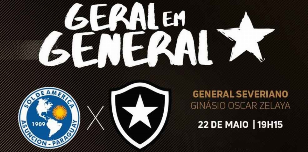 Vem aí mais uma edição do Geral em General! Em parceria do Botafogo com o DAZN, o jogo com o Sol de América (PAR), quarta, às 19h15, pela CONMEBOL Sul-Americana, será transmitido em telão no Ginásio Oscar Zelaya, em General Severiano. Venha prestigiar e torcer nessa corrente positiva.