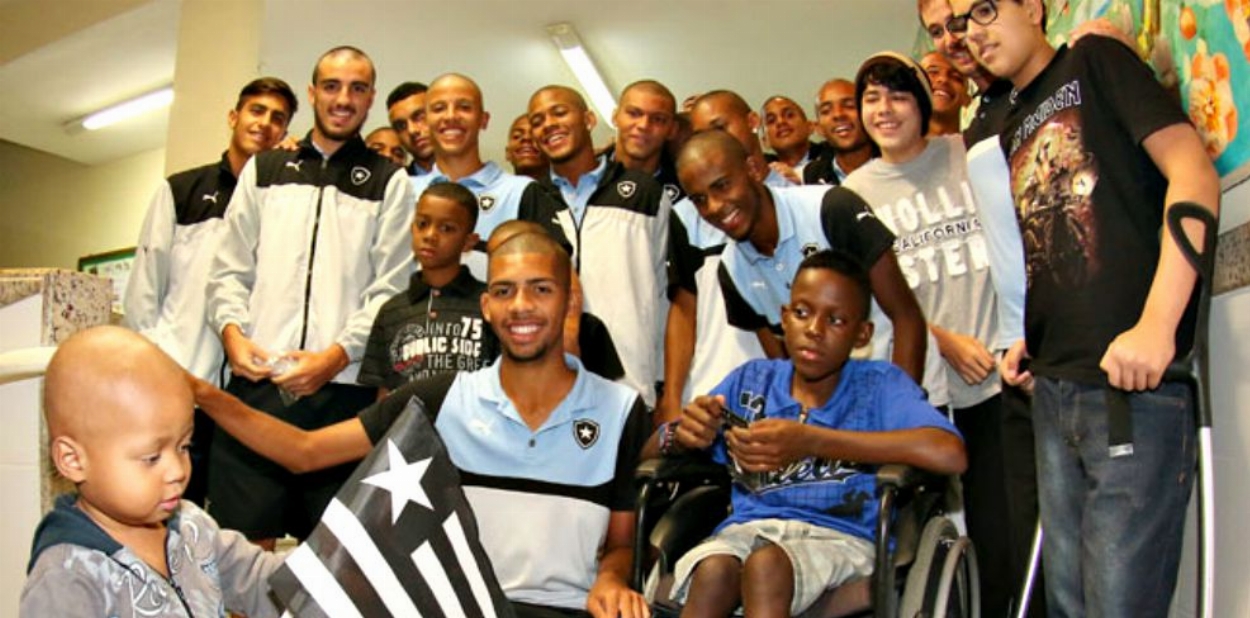Se engana quem pensa que a garotada Sub-17 do Botafogo só faz bonito dentro dos gramados. Na tarde dessa quinta-feira, o elenco alvinegro se reuniu para marcar um verdadeiro golaço, só que dessa vez fora das quatro linhas. Em iniciativa própria, a delegação do Glorioso, que disputa a Taça BH em Juiz de Fora-MG, visitou a Fundação Ricardo Moysés e fez a festa junto com a criançada que está em tratamento contra o câncer.