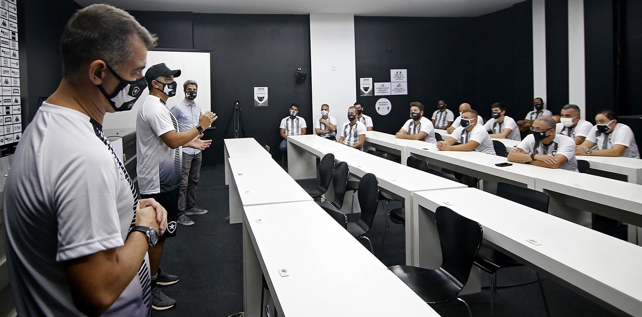 O treinador Marcelo Chamusca se reuniu pela primeira vez com o staff e comissão técnica no Estádio Nilton Santos antes do treinamento desta terça-feira. Ao lado do Auxiliar Técnico Caio Autuori, o novo comandante foi apresentado aos companheiros de trabalho pelo Diretor de Futebol Eduardo Freeland. Chamusca destacou as boas referências sobre o ambiente interno do clube e valorizou a importância de uma boa sinergia entre os setores.