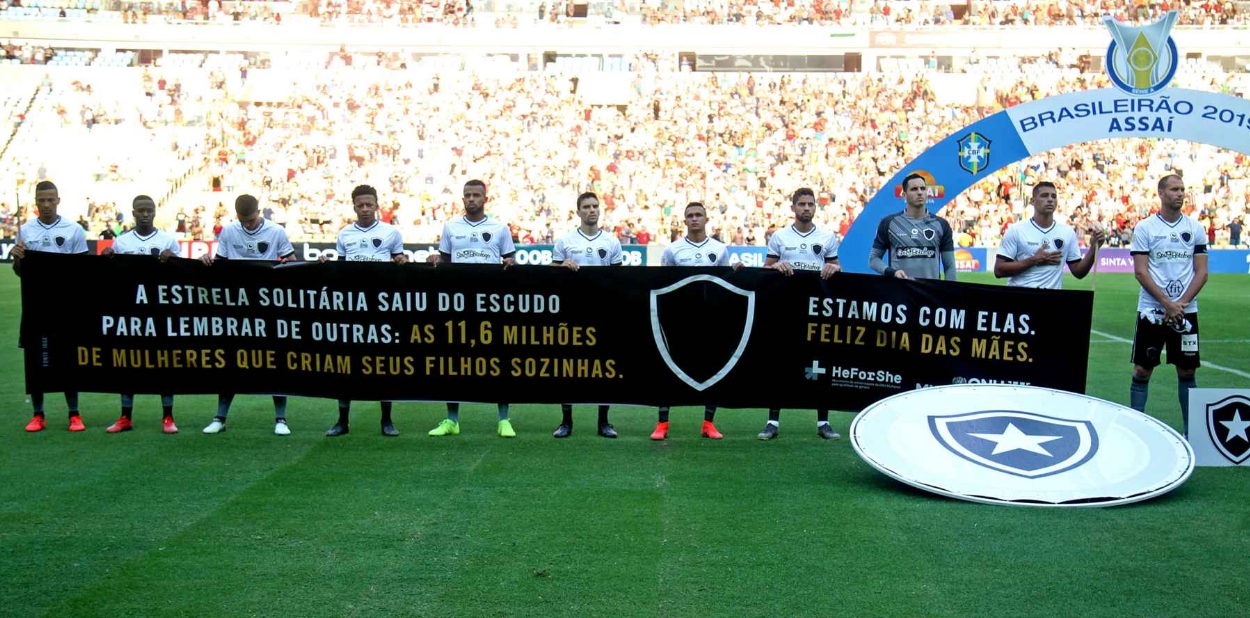 O Botafogo de Futebol e Regatas fez uma homenagem muito especial ao Dia das Mães, dando destaque às famílias lideradas por mulheres que criam os filhos sozinhas. Em parceria com a ONU Mulheres, no clássico contra o Fluminense deste sábado, o Clube deu voz à causa HeForShe - campanha de solidariedade que defende os direitos das mulheres - e surpreendeu ao entrar em campo sem a sua gloriosa estrela solitária no uniforme.