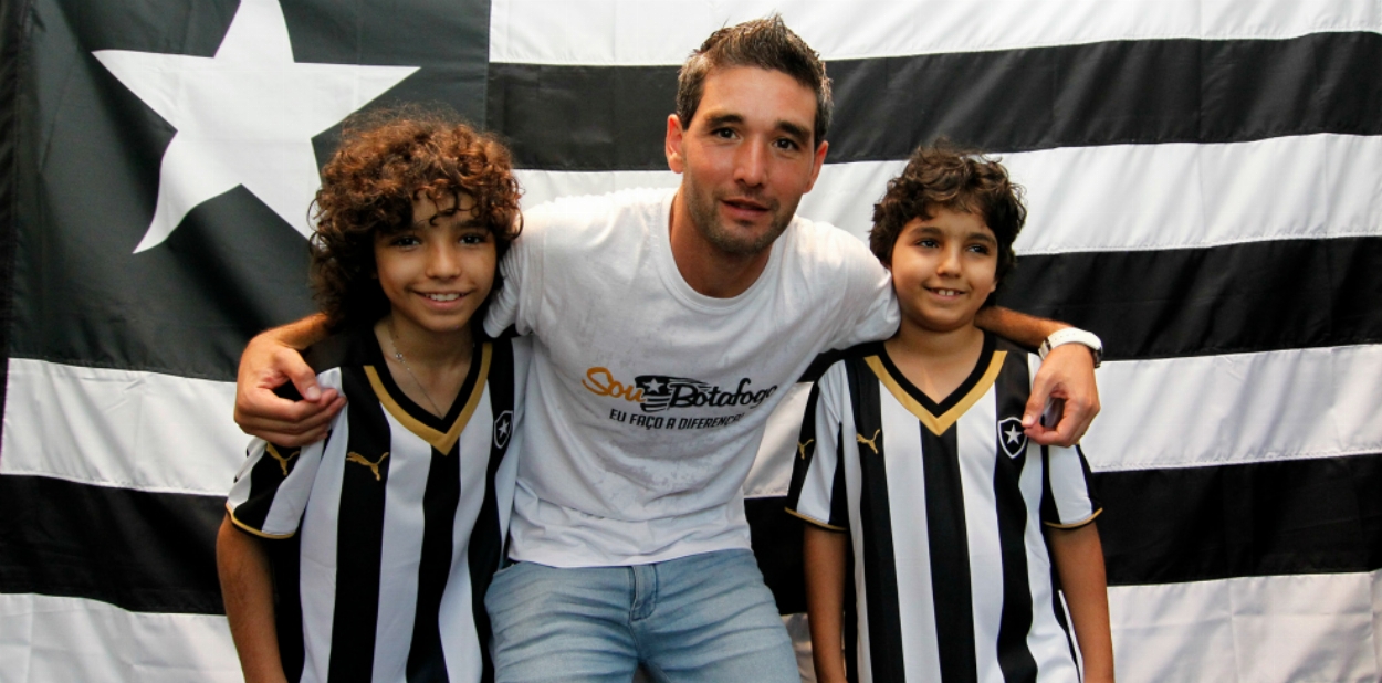 Navarro caiu nas graças da criançada. Depois de se destacar com gols importantes na caminhada do Botafogo rumo à Série A, o uruguaio recebeu com muita simpatia cerca de 200 botafoguenses para fotos e autógrafos em evento realizado nesta segunda-feira na Loja Oficial.
