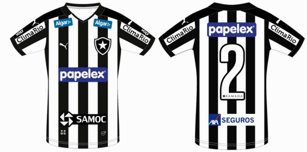 Os patrocínios terão a seguinte disposição no uniforme: Papelex (master - peito e costas), Clima Rio/Midea (mangas), Algar (omoplatas), Samoc (barra frontal) e AXA Seguros (barra traseira).