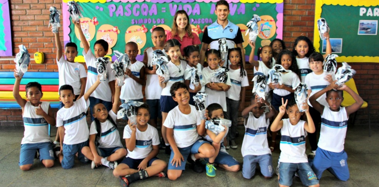 Em seguida veio a hora mais esperada e Gegê convidou os alunos a irem buscar seus ovos. Um por um, o jogador ia distribuindo os presentes e recebendo muito mais que apenas gratidão. O esporte, sem dúvidas, tem o poder de disseminar coisas boas e o Botafogo sabe da importância desse aprendizado para os jovens.