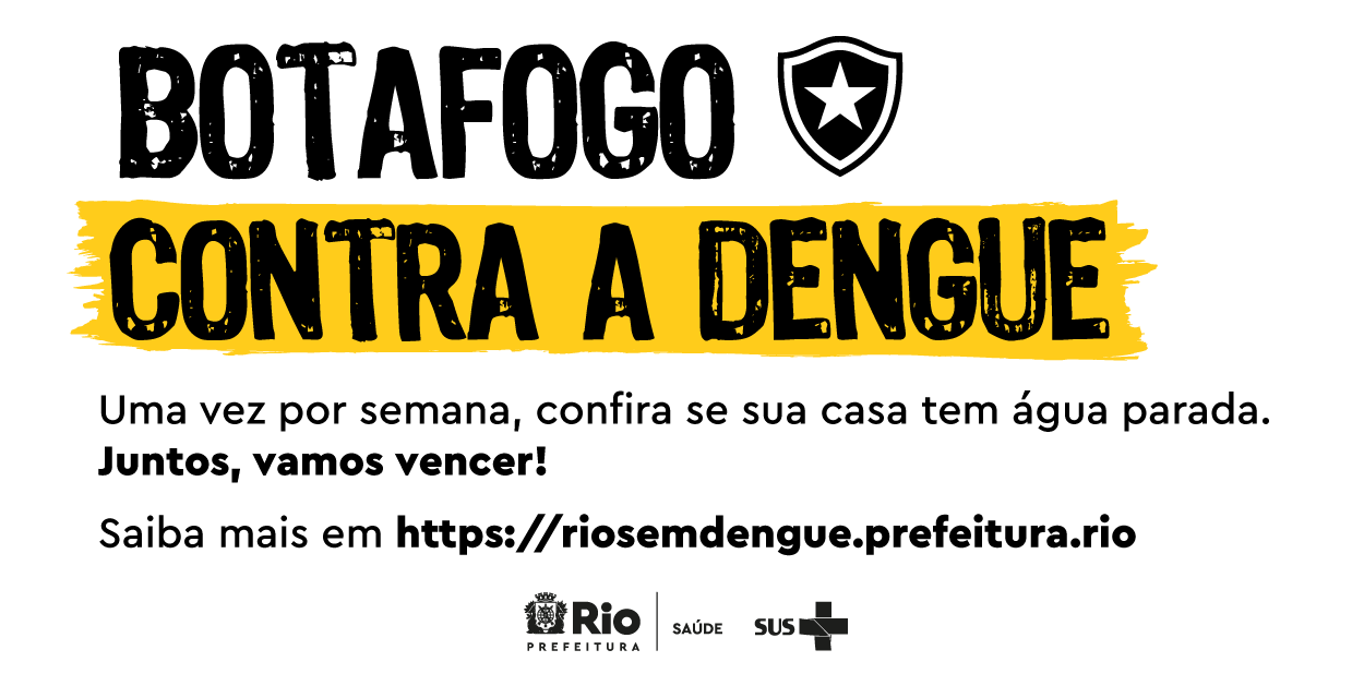 A Secretaria Municipal de Saúde do Rio de Janeiro (SMS) ganhou mais um parceiro no combate à dengue: o Botafogo. Neste domingo (17), o Clube terá mensagens de prevenção no jogo contra o Sampaio Corrêa, pela Taça Rio, sendo exibidas no telão do Estádio Nilton Santos. O objetivo é dar visibilidade às ações desenvolvidas pela SMS para combater a proliferação do mosquito Aedes aegypti e promover a adesão popular às medidas de prevenção.