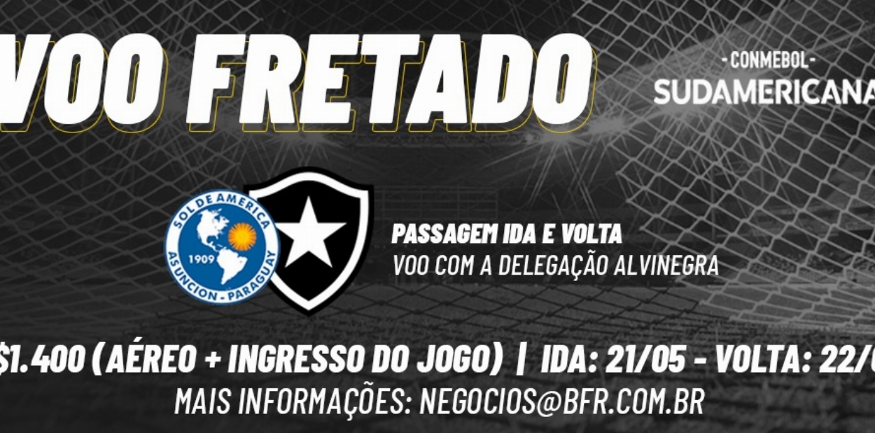 O Botafogo terá na próxima semana um importante desafio em Assunção, no Paraguai, pela Copa Sul-Americana, e o torcedor alvinegro tem uma oportunidade incrível. Está à venda um pacote exclusivo para o torcedor acompanhar Sol de America x Botafogo, na próxima quarta-feira, dia 22, às 19h15 (Horário de Brasilia), no Estádio Luis Alfonsi Giagni, em voo fretado com o time.
